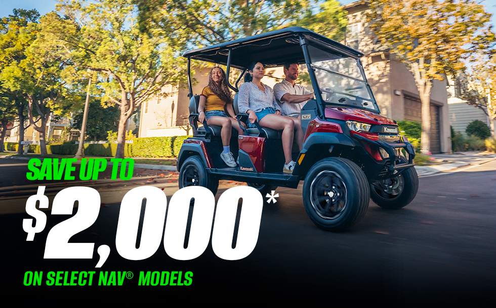 *Model & year exclusions apply. May be combined with promotional retail financing rates. Incentives are available at participating Kawasaki dealerships. Offer valid through 12/31/2025. Subject to change without notice. Offer available on approved purchases of select new unregistered Kawasaki vehicles. Valid through Dec 31, 2025