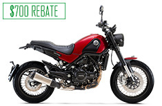 Offer good on all new and unregistered 2022 Benelli Leoncino models. Not all customers will qualify. The finance offer will only be available to credit qualified customers. $700 Rebate good on all new and unregistered 2022 Benelli Leoncino models ONLY. Rebate can only be used for this Benelli Leoncino purchase at the dealership and must be redeemed on the date of purchase. It has no cash value and is not transferable. Example: A total 48-month term with an Amount Financed of $6,400 and 3.99% APR requires monthly payments of $144.48 for 48 months after Rebate. Your actual monthly payment may differ based on financing terms, credit tier qualification, accessories or other factors such as down payment and fees. A 11.74% down payment is required to obtain advertised monthly payment of $144.48. Contact a participating Benelli/SSR dealer for details. Offer expires 08/31/2025